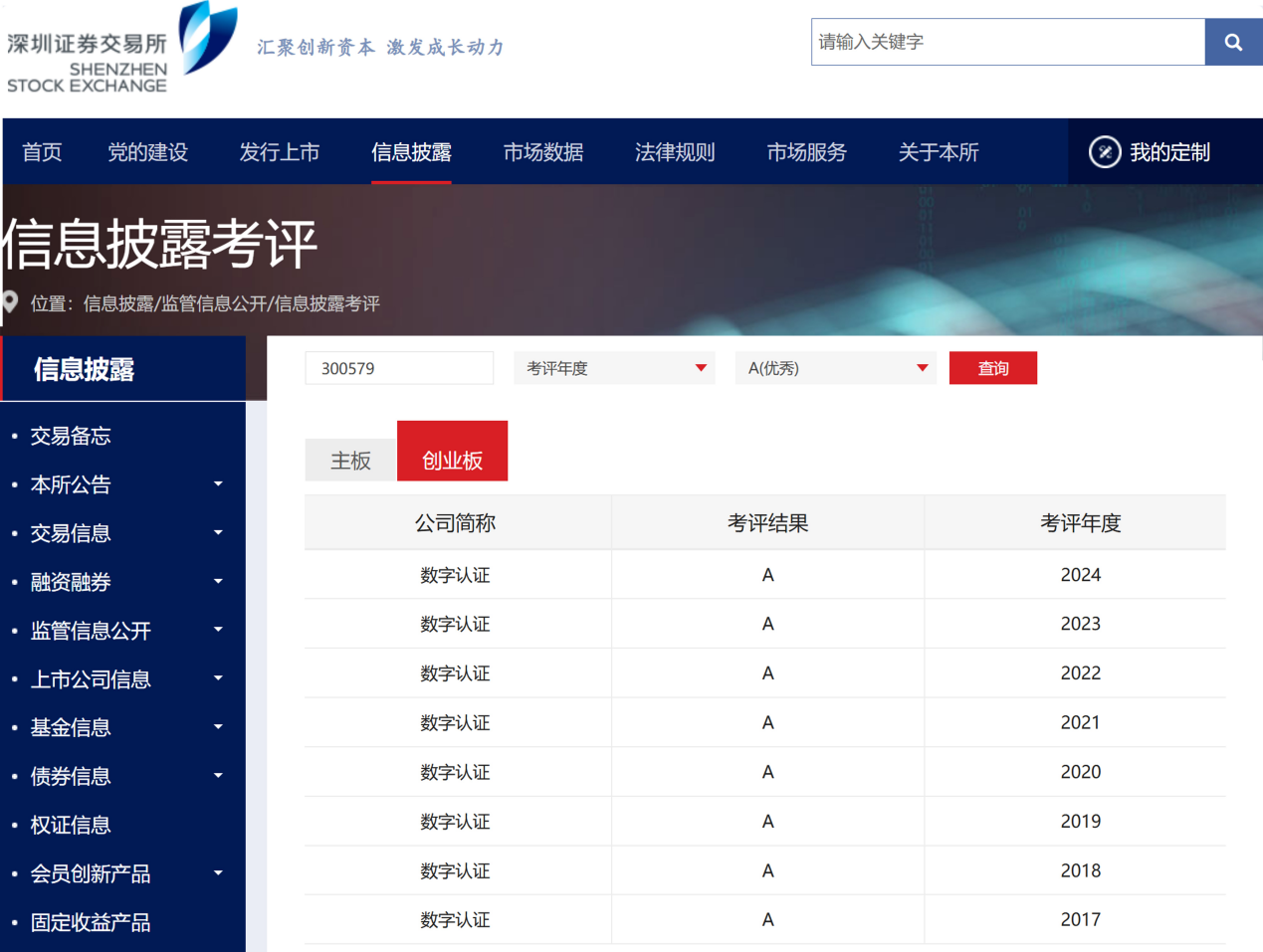 數字認證連續8年獲深交所信息披露考評A級